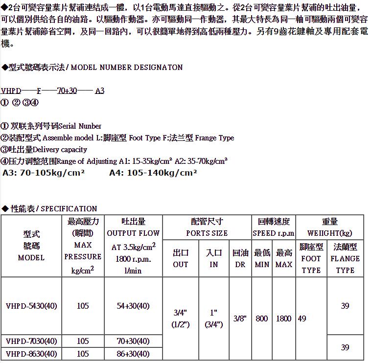 VHPD-F-70+30-A3系列双联叶片泵