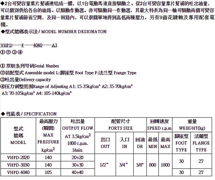 VHPD-V-4040-A3系列双联叶片泵
